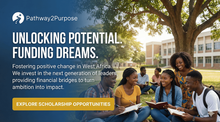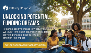 The Pathway2Purpose Scholarship is designed to support dedicated students across West Africa who demonstrate both academic excellence and a commitment to community service. This award covers tuition and essential learning materials for qualified applicants facing financial hardship. Our goal is to bridge the gap between ambition and achievement, ensuring that economic circumstances never stand in the way of a student’s potential. If you know any deserving individual, nominate them by send us an email with their details.